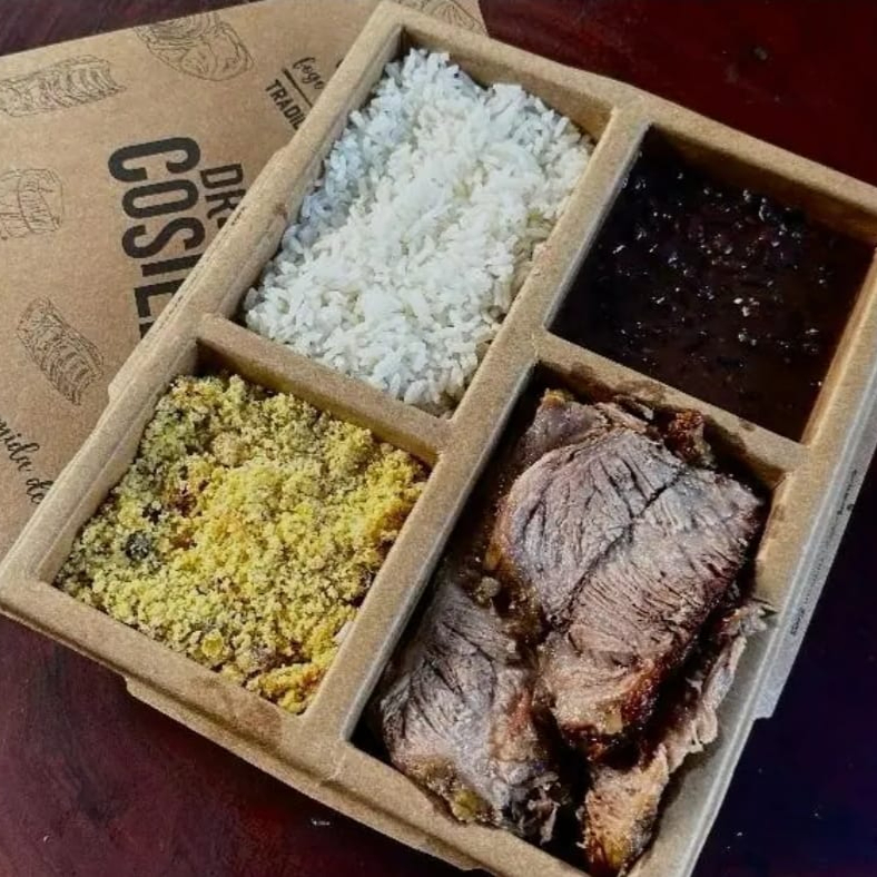 01 box 500g de costela desossada e fatiada + 01 box 400g Arroz Carreteiro e 01 box 400g Polenta Cremosa com molho de Calabresa + 01 box 200g de Farofa. ++Sr. Clientes, não fazemos alterações ou troca no prato***