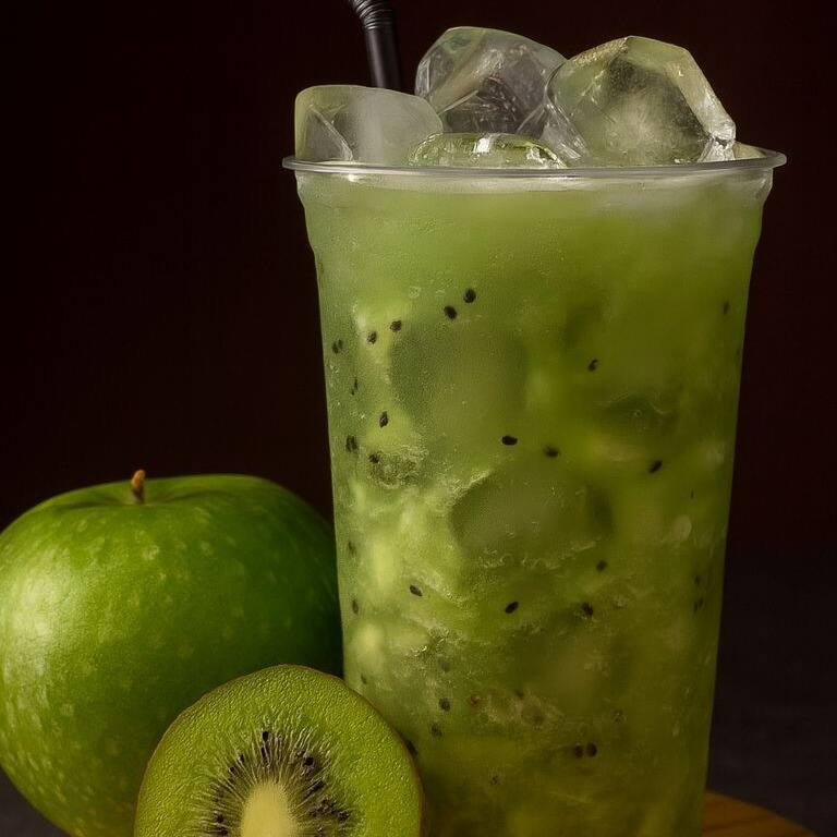 Leve, cítrico e refrescante! Combinação de maçã verde e kiwi com limão e a bebida alcoólica que você preferir.