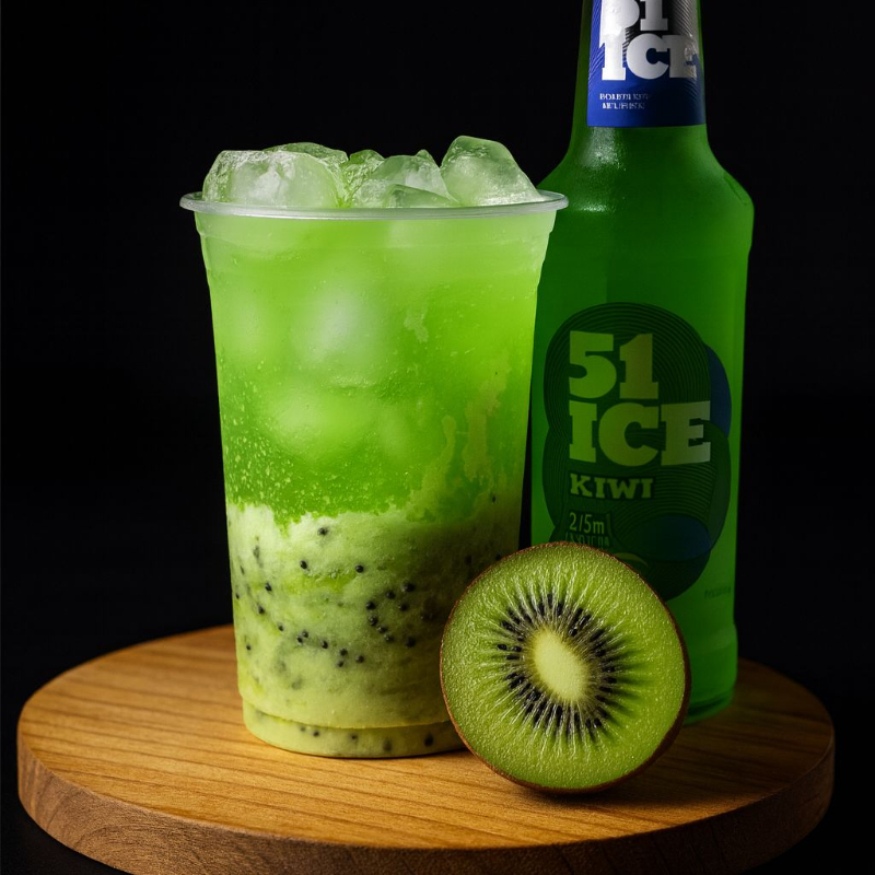 Drink exclusivo com kiwi fresco, leite condensado e 51 Ice. Doce, cremoso e vibrante.