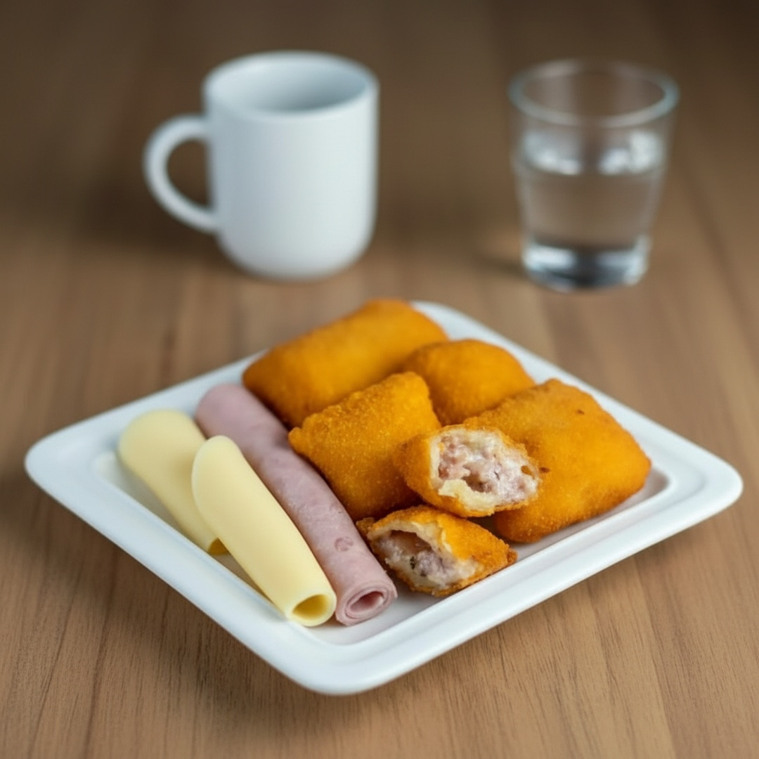 Delicioso Risole sequinho e crocante recheado com presunto e queijo.