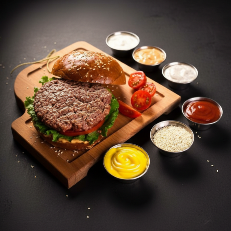 Hambúrguer artesanal de carne (150g), queijo cheddar especial, cebola grelhada, molho especial, tomate, alface e maionese no pão de hambúrguer (acompanha mini porção de batata)