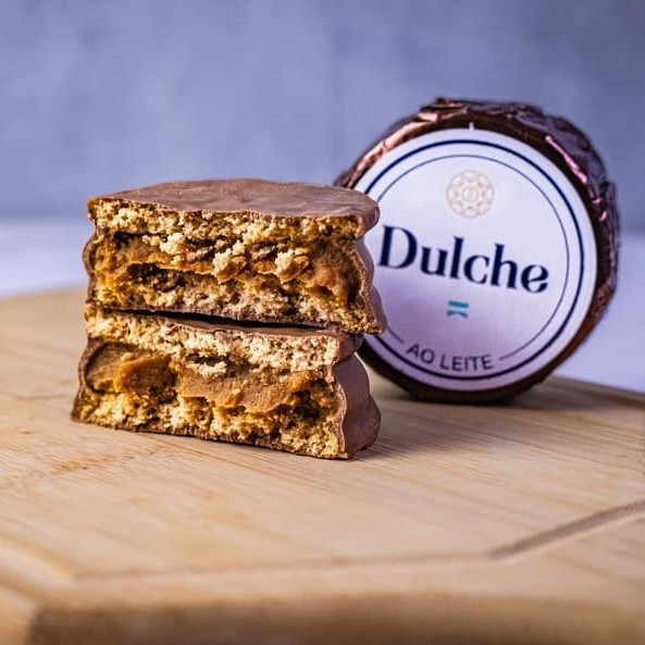 Delicioso Alfajor Recheado com Muito Doce de Leite Argentino e Incrível Cobertura de Chocolate ao Leite.