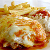 Filé mignon, muçarela, alface americana, tomate e molho da casa e fritas