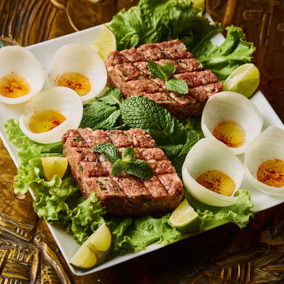 Preparado com trigo para kibe, carne moída temperada e especiarias, servidos com pão sírio. Uma opção autêntica e cheia de sabor, perfeita para quem aprecia a verdadeira iguaria da culinária árabe!