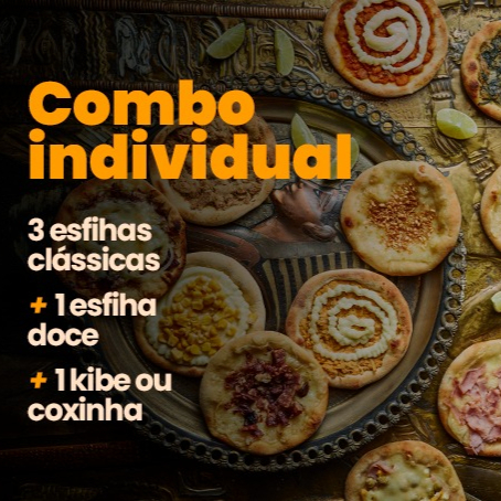 Perfeito para uma pessoa! Escolha os sabores das 3 esfihas clássicas, 1 doces e entre kibe ou coxinha. Um combo completo do seu jeito, do salgado ao doce!