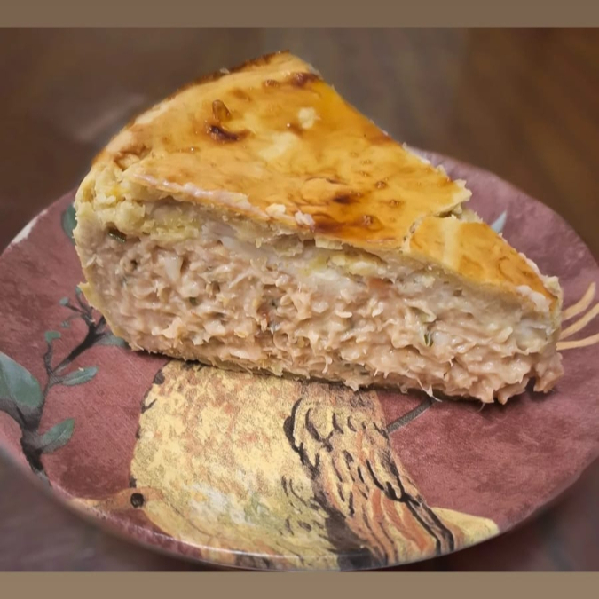 Torta Salgada com massa crocante e recheio de Frango desfiado e Cream Cheese