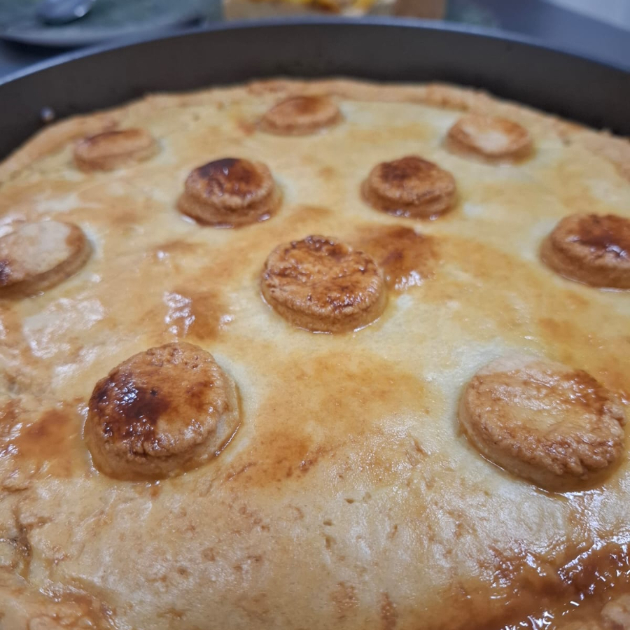 Torta Salgada com massa crocante e recheio de Palmito e Requeijão