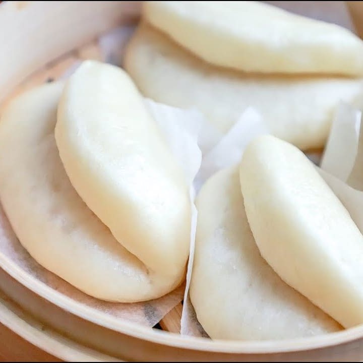 Bao grelhado de porco e nirá, acompanha molho Hoisin