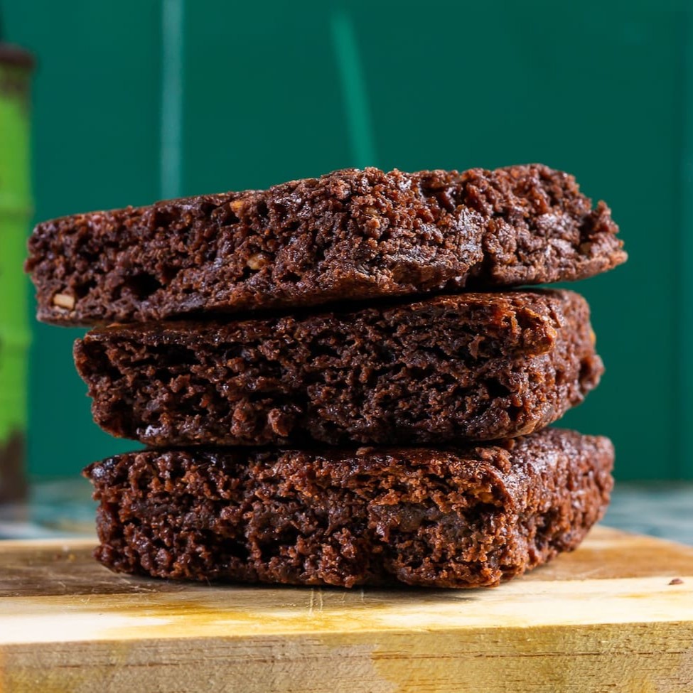 Brownie Vegano de Chocolate Meio Amargo (sem lactose) e Castanha de Caju. Brownie de 90 gramas (aproximadamente).