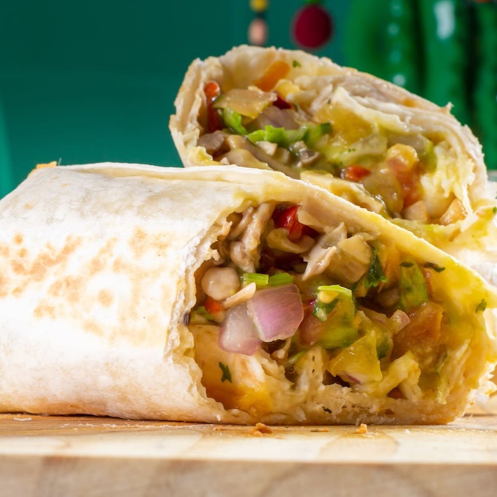 Tortilha de trigo recheada com cogumelos shimeji, pimentões, pico de gallo, guacamole e alface. Burrito de 350 gramas (aproximadamente) + um molho à sua escolha de brinde! (40 ml aproximadamente). *Não Dá Pra Tirar O Pimentão*