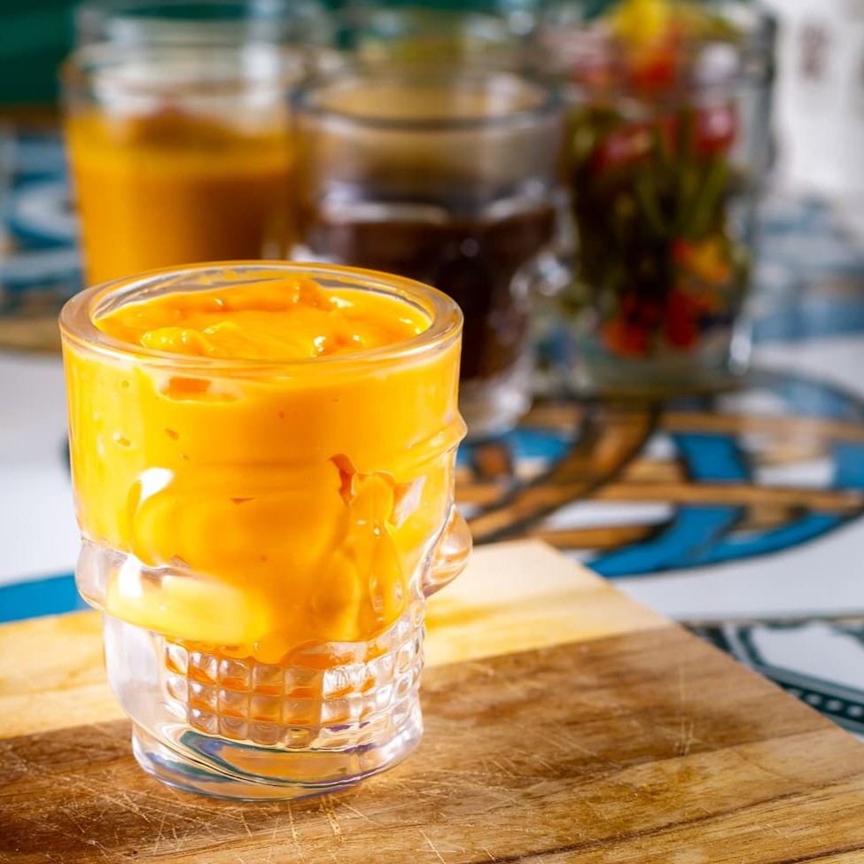Molho à base de queijo cheddar cremoso. Unidade de 40 ml (aproximadamente)