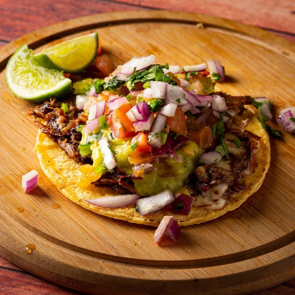Um taco irresistível composto por uma tortilha de milho macia e leve, recheado com ingredientes frescos e saborosos! Escolha entre suculentas carnes ou uma opção vegetariana, acompanhadas de temperos autênticos, um toque de frescor com guacamole, pico de gallo (vinagrete) e queijo. Para finalizar, um pedaço de limão, trazendo o toque cítrico perfeito para realçar ainda mais os sabores!