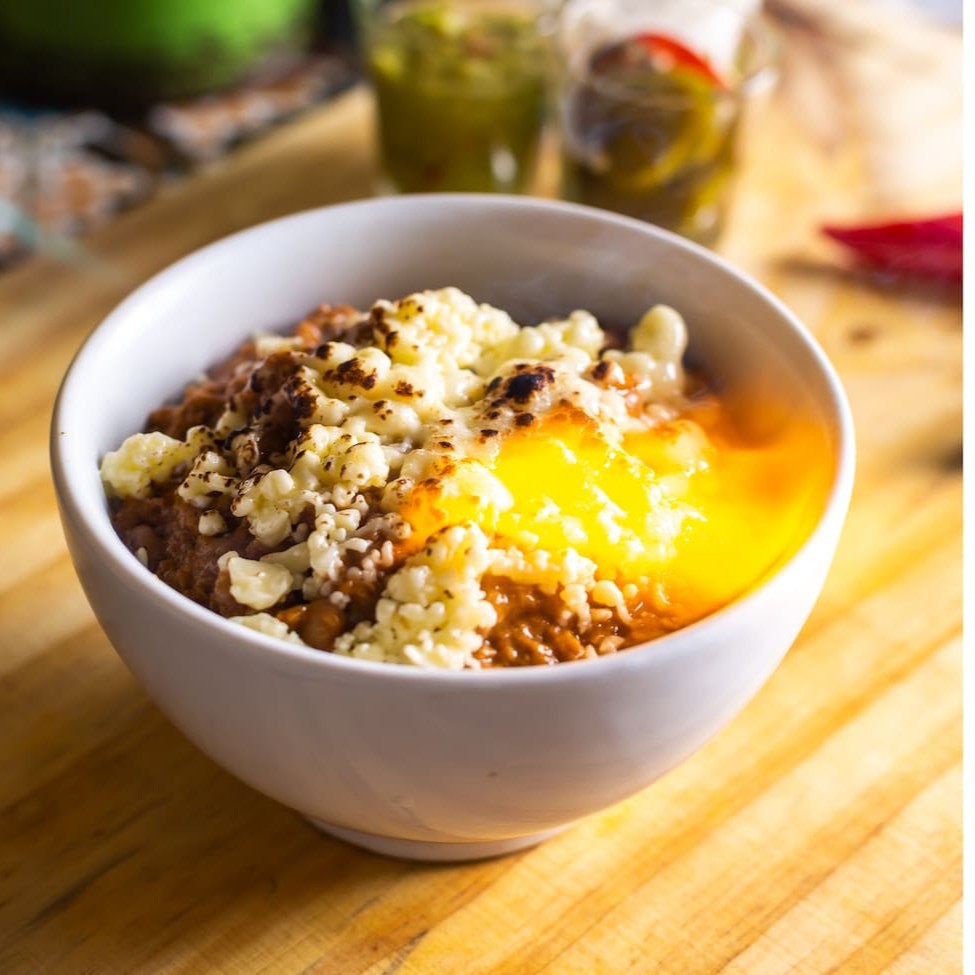 Delicioso molho condimentado de vegetais e feijão. Porção com 350 gramas (aproximadamente). Queijo opcional.