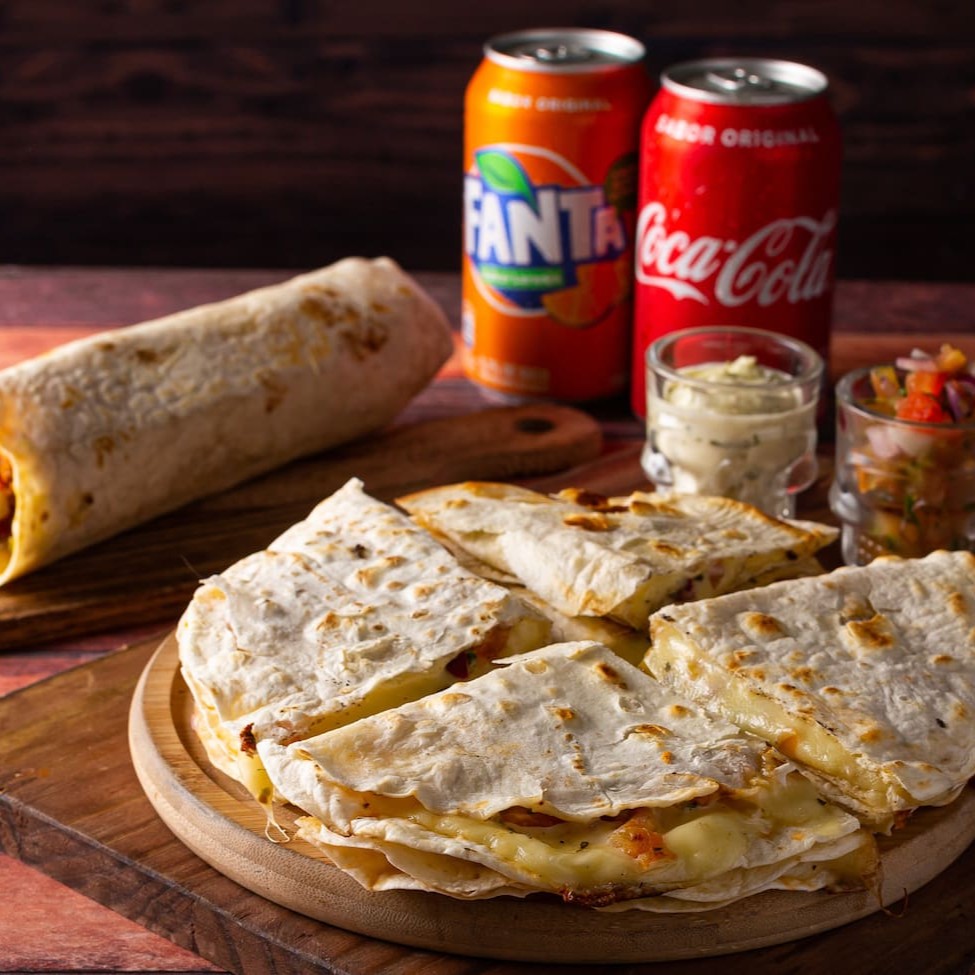 Um combo perfeito para matar a sua fome com muito sabor! Escolha um delicioso burrito e uma porção generosa de Quesadilla Grande (qualquer sabor), ambos acompanhados de um molho adicional à sua escolha. Para completar, duas bebidas refrescantes: Refrigerante (350ml) ou Cerveja (269ml). Ideal para compartilhar ou se deliciar sozinho.