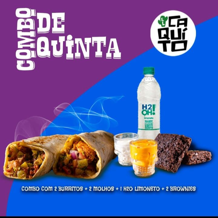Combo composto por 2 deliciosos burritos, 2 molhos artesanais, 1 H2O Limoneto + 2 Brownies Veganos! Combo recomendado para duas pessoas.