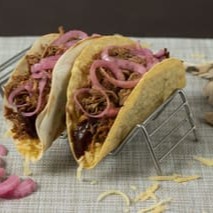 Típico taco com recheio diretamente do texas. Massa da tortilla de milho ou trigo (você escolhe) + mix de queijos + saboroso pulled pork (pernil desfiado defumado por 4 horas em lenha frutífera)+ barbecue +picles de cebolas roxas.