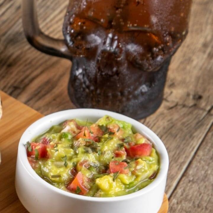 A 'Guacamole' é uma deliciosa combinação de polpa de avocado de alta qualidade, meticulosamente misturada com cebolas e cebolas roxas crocantes. Acrescentamos a essa mistura, tomates selecionados, suculentos e frescos, que são cuidadosamente temperados com nosso tradicional mix de especiarias da casa. Uma explosão de sabores que promete agradar até os paladares mais exigentes