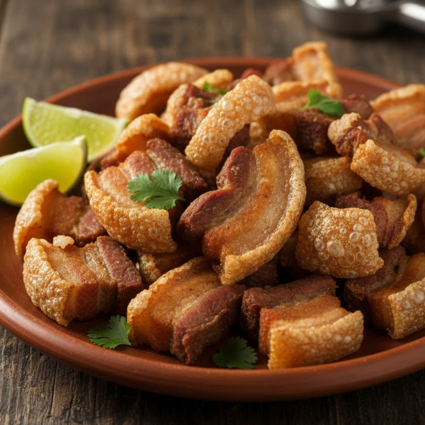 Tortilha crocante e pedaços de pernil