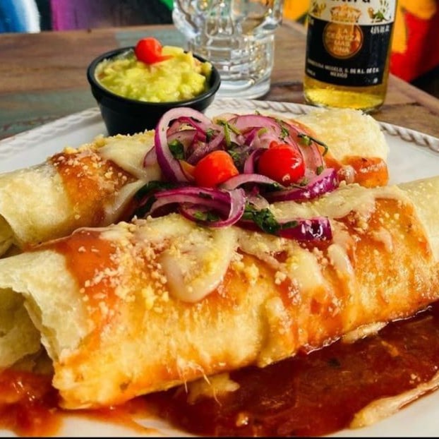 São 3 burritos, 1 porção de nachos grande mais guacamole, churros doce de leite ou chocolate e um refrigerante 2 litros. Pimenta opcional :)