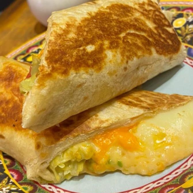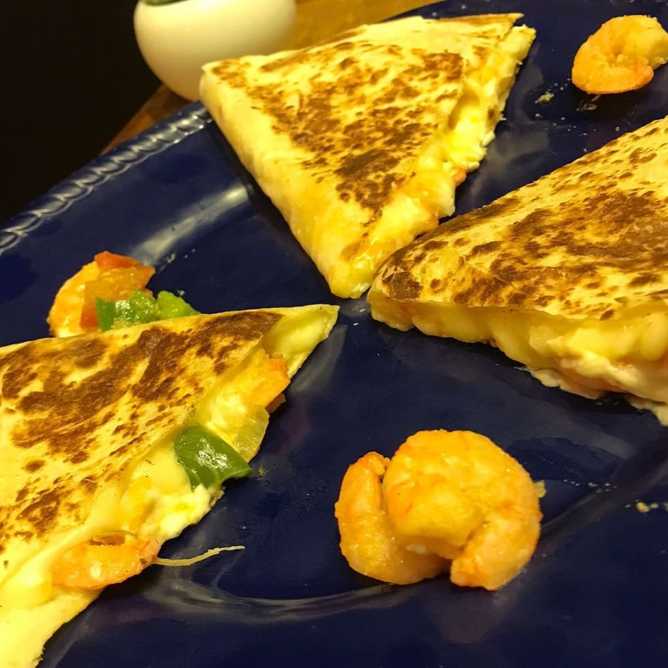 Quesadilla de Chilli, Fajitas, Camarão, Carne Seca e Frango Crispy, servida em 3 pedaços. Caso queira apimentado, avise-nos!