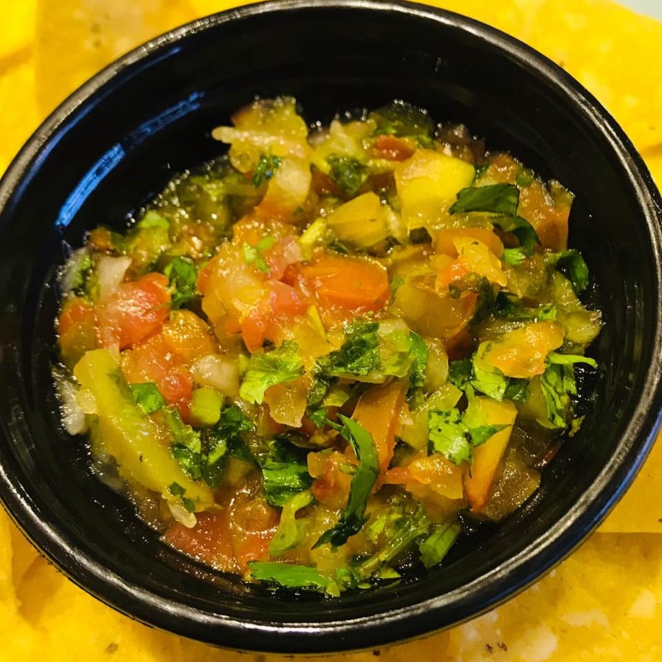 Tomate, cebola e jalapeño picado. Acompanha 50g de nachos :)