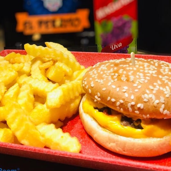 Um hambúrguer (pão com gergelim, 80g de hambúrguer artesanal, katchup e queijo cheddar) e uma porção de batata pequena *-*