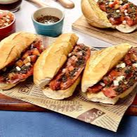 Típico sanduíche uruguaio no Pão, Linguiça, Maionese especial, Alface e Tomate.
