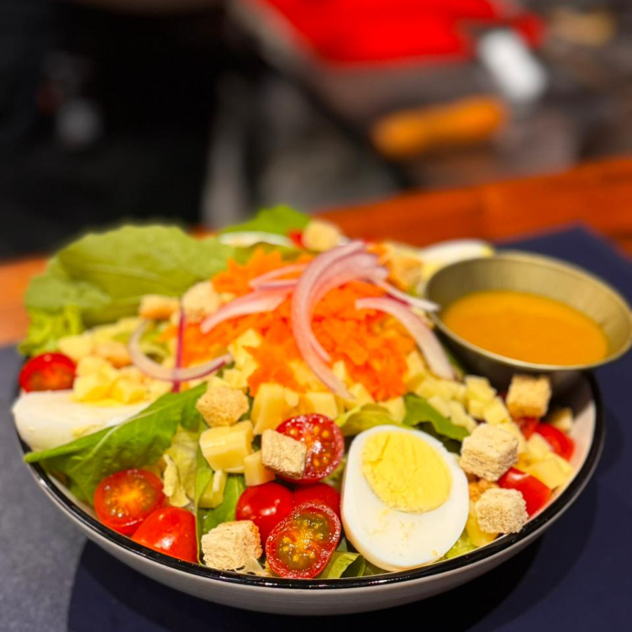 Carne de corte magra e saborosa, bacon fatiado, presunto, queijo, alface, tomate, tiras de pimentão grelhado, ovo e maionese especial.