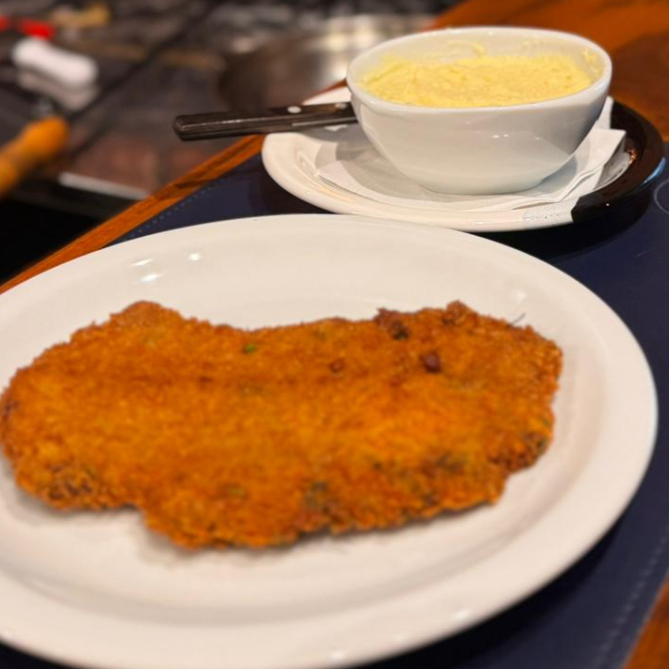 Filé mignon a milanesa napolitana semelhante à parmegiana, mas com toques sul-americanos. Depois de empanado e frito, o bife é coberto com presunto, molho de tomate, tiras de pimentão assado e queijo mussarela derretido, e não podem faltar as batatas fritas.