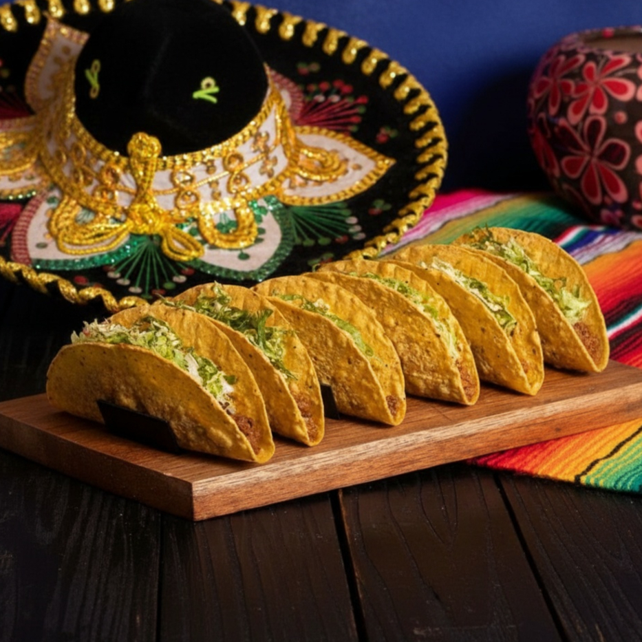 6 tacos bem recheados pra dividir (ou não). Perfeito pra galera ou pra quem leva taco a sério!