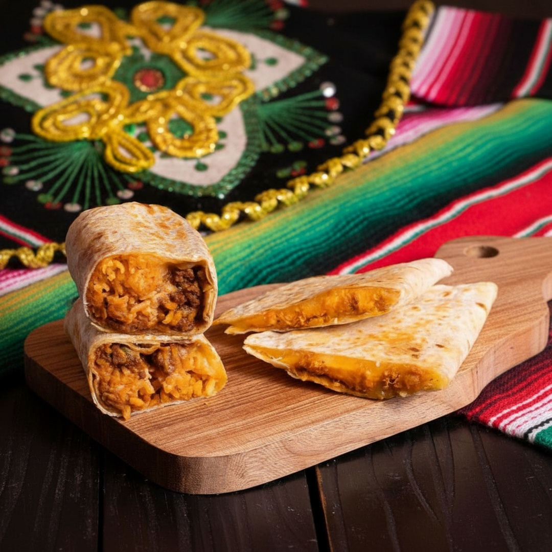 1 burrito e 1 quesadilla formando o par perfeito pra matar a fome com muito sabor mexicano!
