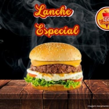 Pão, 1 hambúrguer, molho especial, queijo, bacon, ovo, alface americano, tomate
