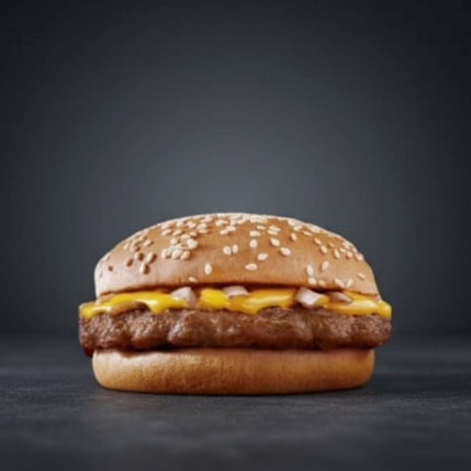 Pão, 1 hambúrguer, molho especial, queijo. Acompanha um refrigerante de 350ml e uma batata pequena.