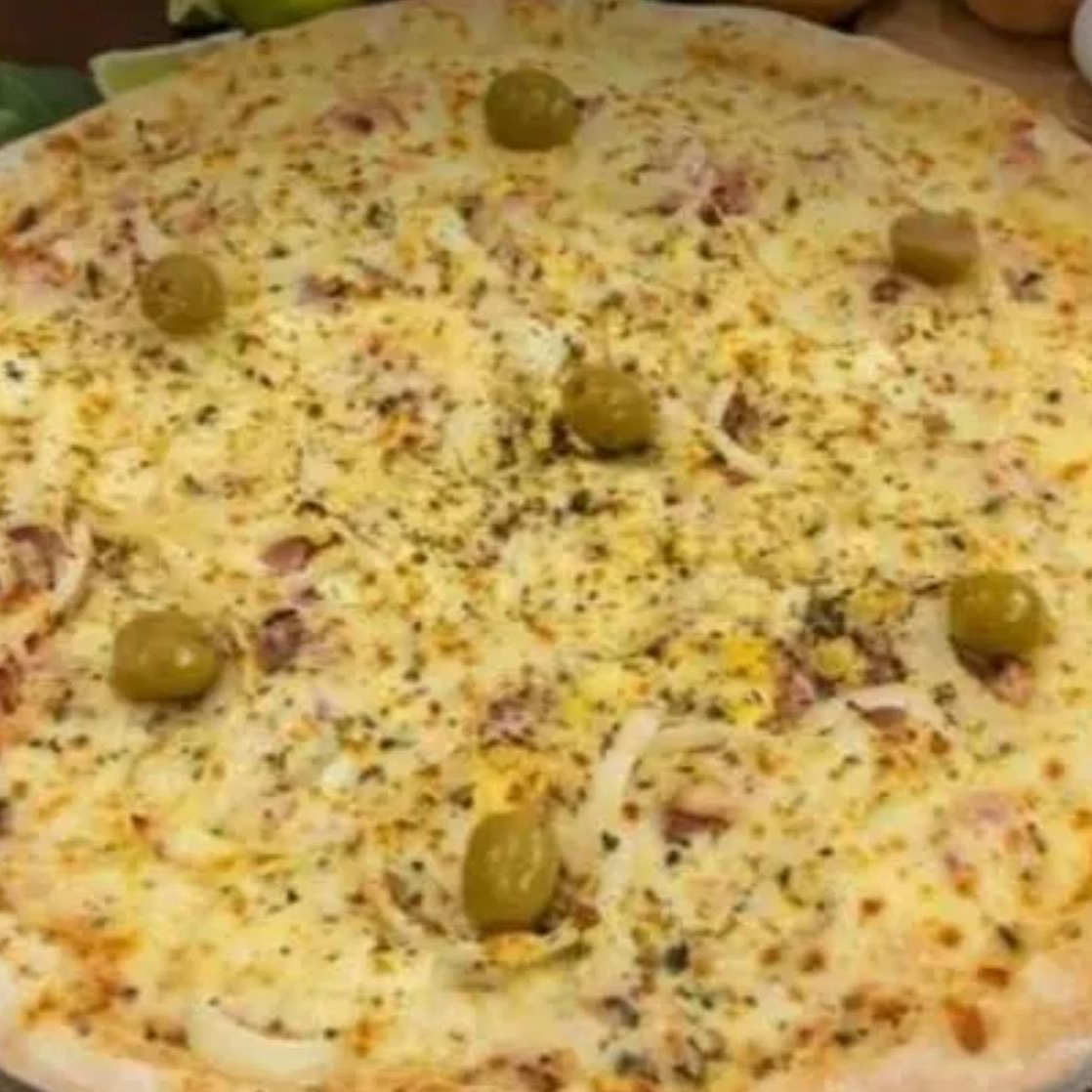 molho, presunto, cebola, mussarela, ovo, milho, palmito e azeitona