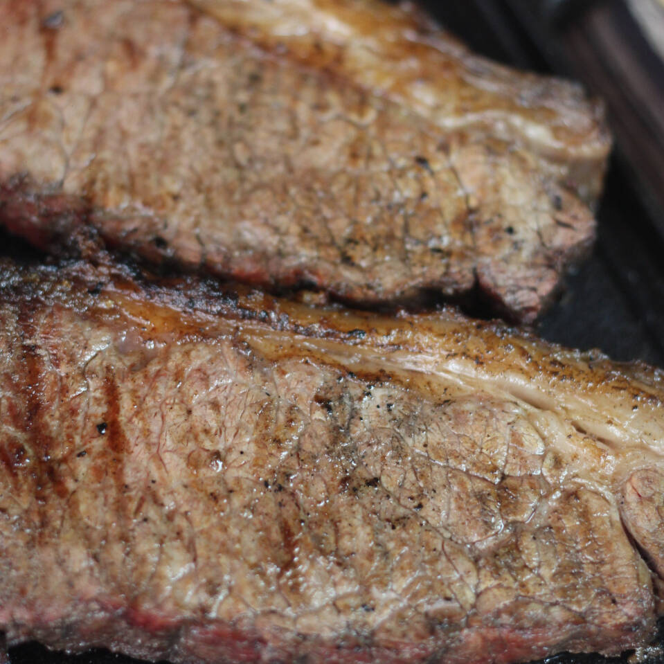 Corte de carne retirada da parte traseira do boi, defumada em lenha frutífera no pit smoker e finalizada na parrilla em fogo forte.