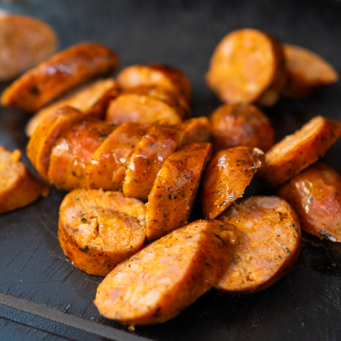 Saborosa Linguiça Artesanal estilo cajun, cuidadosamente produzida em nossa própria cozinha. É defumada à perfeição em lenha frutífera, utilizando a técnica tradicional do pit smoker, resultando em uma intensidade de sabor incomparável e uma textura irresistível.