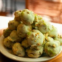 Carolinas Recheada com creme de pistache com cobertura de ganache de pistache com pistache triturado