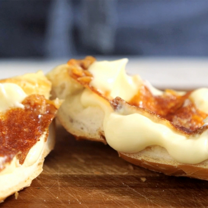 Pão Francês na Chapa finalizado com requeijão