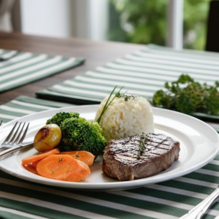 Desfrute de nosso Prato Executivo Filet Mignon, meticulosamente preparado com um suculento steak de 160g do mais tenro Filet Mignon. Acompanha arroz fresco e saboroso, autêntico feijão brasileiro, legumes cozidos ao ponto de perfeição e levemente salteados para realçar os sabores. Para adicionar um toque especial, incluímos a nossa farofa crocante e o exclusivo molho da casa, que agrega um sabor i