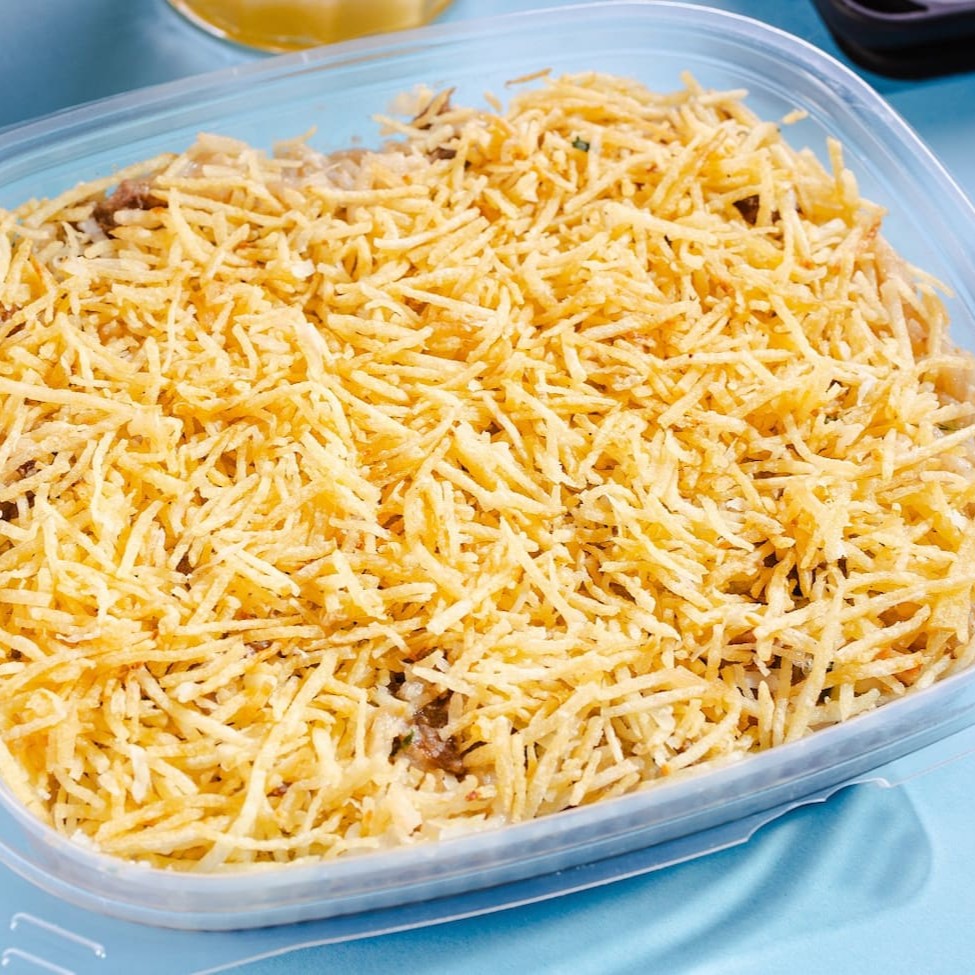 Produto congelado pronto para aquecer. Feito com ingredientes selecionados e sem adição de conservantes. Opção perfeita para quem busca praticidade sem abrir mão da qualidade e sabor. Ingredientes: arroz branco, carne bovina com creme de leite, champignon, catchup, tomate, mostarda amarela e batata palha. Contém Glúten. Alérgicos: contém derivados de soja e leite. Pode conter trigo, ovo e castanhas. Serve 1 pessoa. Aquecimento em microondas. Todo modo de preparo está descrito na embalagem. Não acompanha prato e talher.