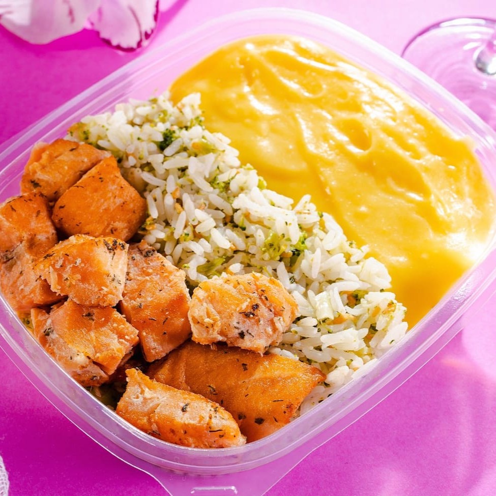 Produto congelado pronto para aquecer. Feito com ingredientes selecionados e sem adição de conservantes. Opção perfeita para quem busca praticidade sem abrir mão da qualidade e sabor. Ingredientes: Arroz com brócolis (arroz agulhinha polido, brócolis, cebola, linhaça dourada, óleo de soja, sal e alho), Purê (mandioquinha salsa, creme de leite, leite, manteiga e sal), Salmão (salmão, azeite de oliva, sal, hortelã, funcho e coentro em pó). Contém Glúten. Alérgicos Contém: peixe, leite, derivados de leite e soja. E Pode Conter trigo, ovos e castanhas. Serve 1 pessoa. Aquecimento em microondas. Todo modo de preparo está descrito na embalagem. Não acompanha prato e talher.