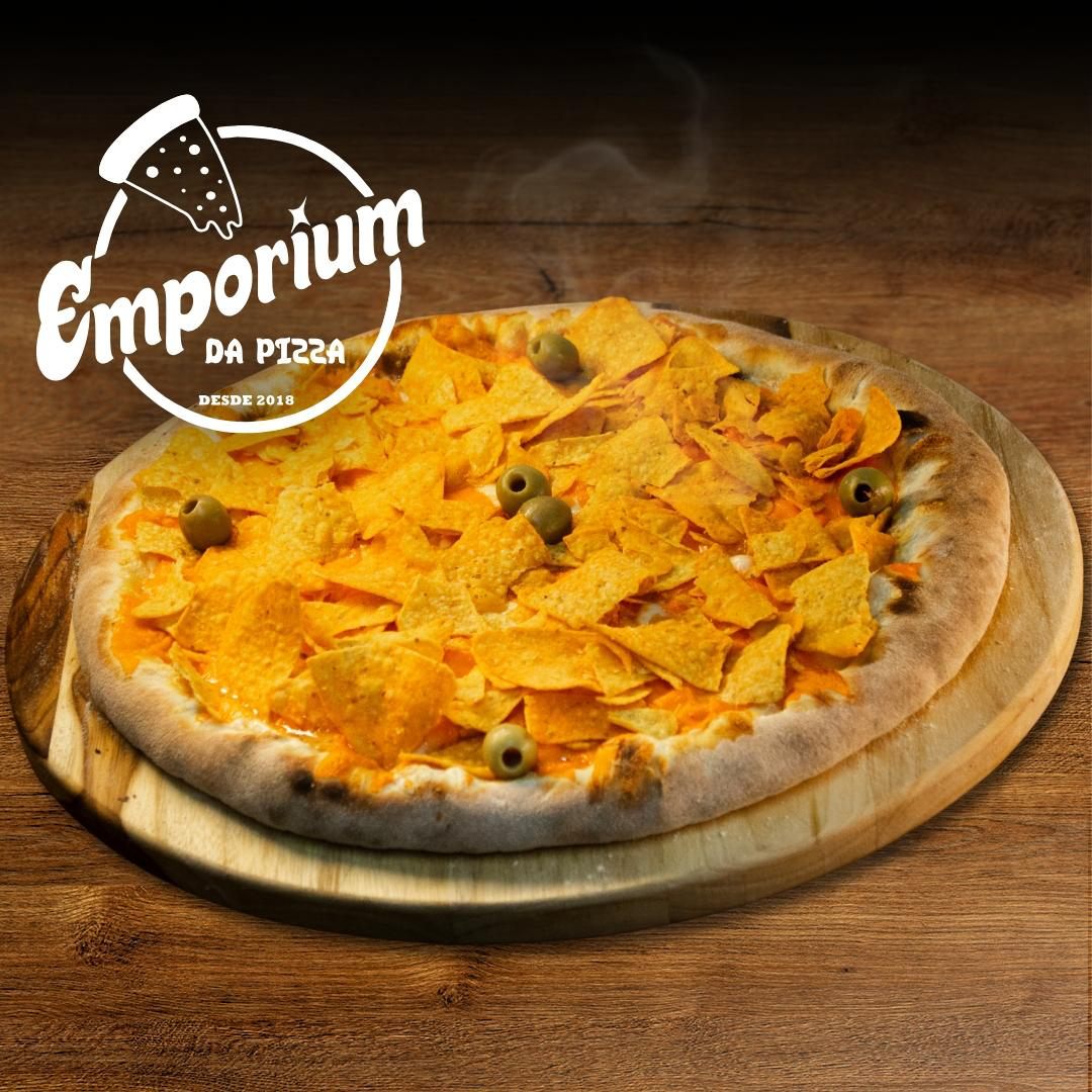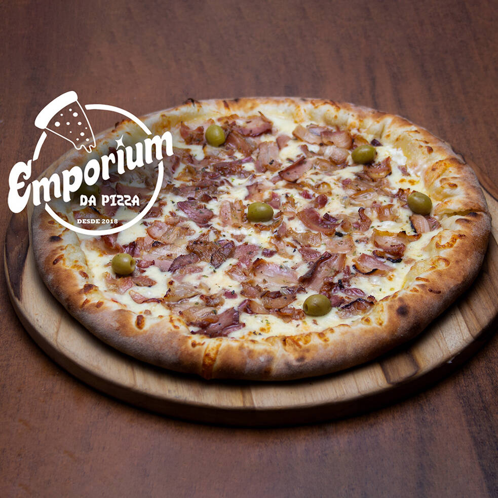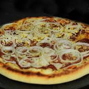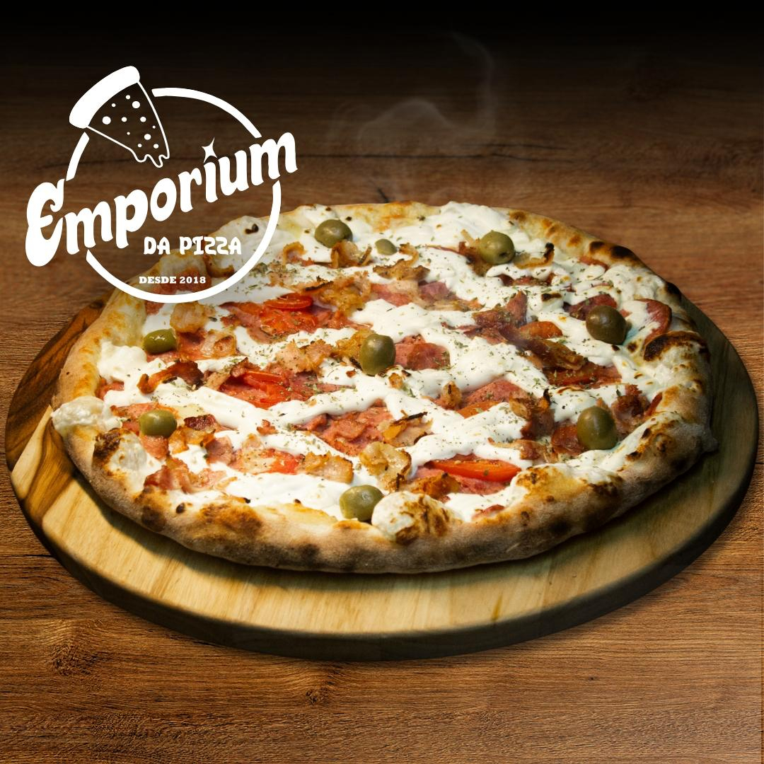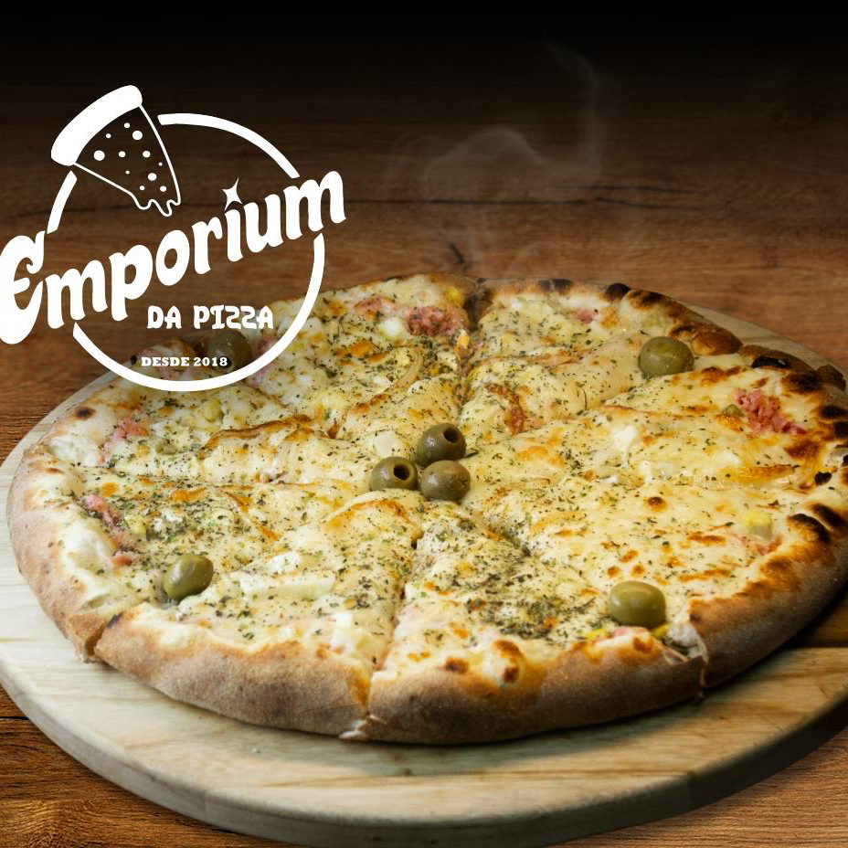 Pizza portuguesa, presunto, ervilha, milho, palmito,cebola,ovo , mussarela, orégano e azeitonas