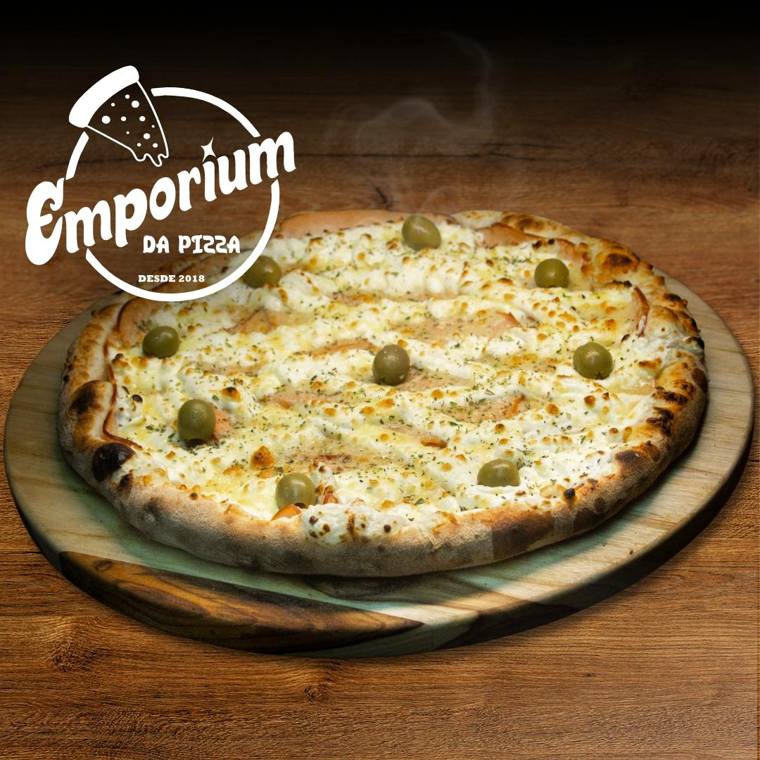 peito de peru defumado,frango desfiado, palmito,ervilha,milho,mussarela e bacon