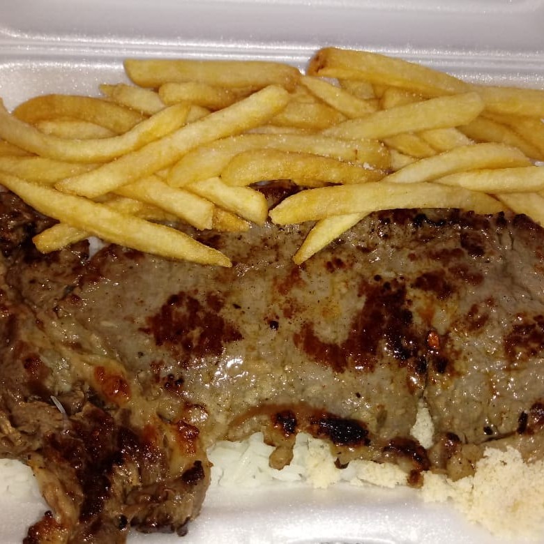 Servido com arroz, feijão, farofa, salada e escolha sua guarnição: Fritas, purê ou legumes.