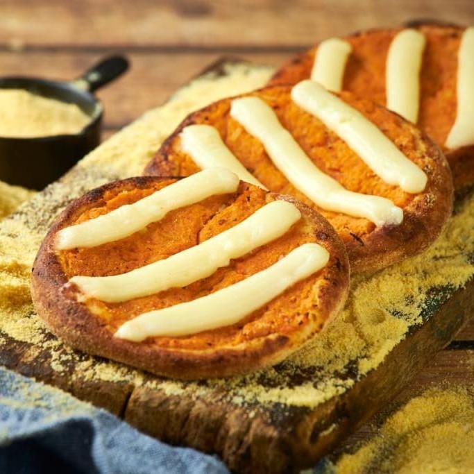 Calabresa - Frango com Catupiry Carne - pizza com Mandioca na massa.