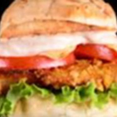 Pão de hamburger, filé de frango empanado, catupiry, tomate , alface e maionese da casa