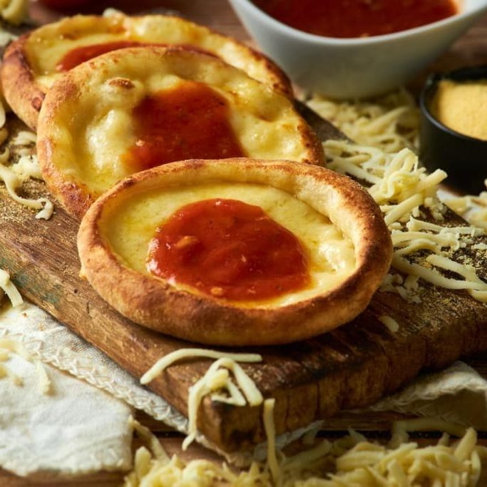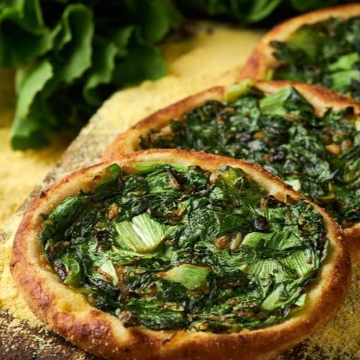 3 esfihas de queijo + 3 esfihas de escarola com cream cheese + 3 esfihas de mussarela com molho de tomate.