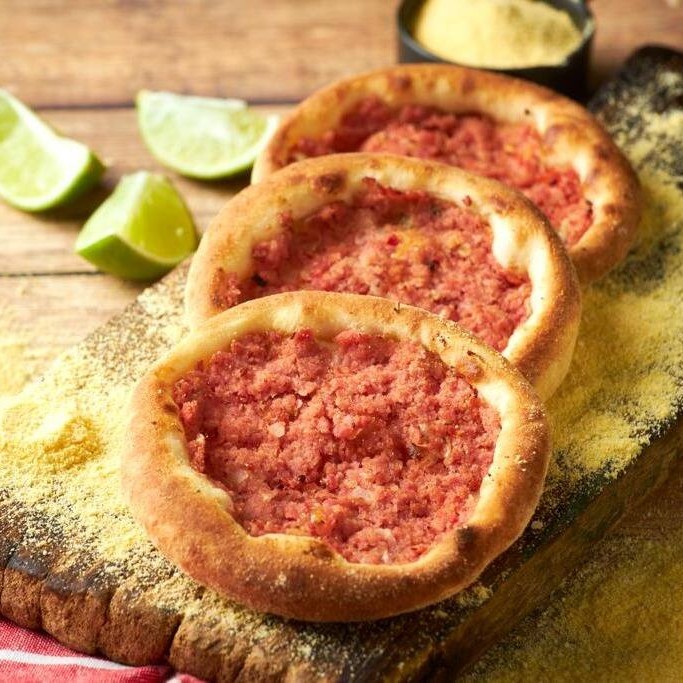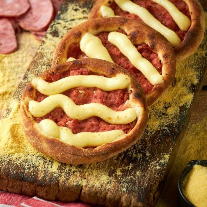 CARNE MOIDA 100% BOVINA , CEBOLA , TOMATE ,ESPECIARIAS E MUSSARELA