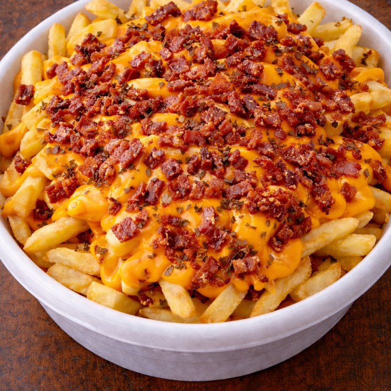 Pão de hamburger, hamburger de carne bovina, queijo, maionese da casa e bacon