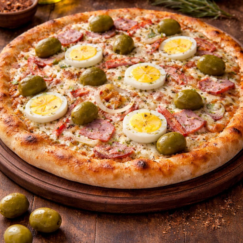 1 pizza (calabresa ou mussarela) + refrigerante 2 litros.